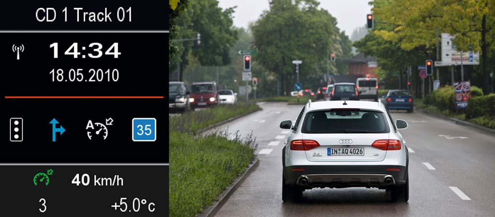 Svítí-li na semaforu červená, informuje palubní počítač řidiče, za jak dlouho se na semaforu objeví zelená. Pokud řidič přijíždí k oranžově nebo červeně svítícímu semaforu, je o této skutečnosti informován optickým a akustickým signálem, případně krátkým brzdovým impulzem.