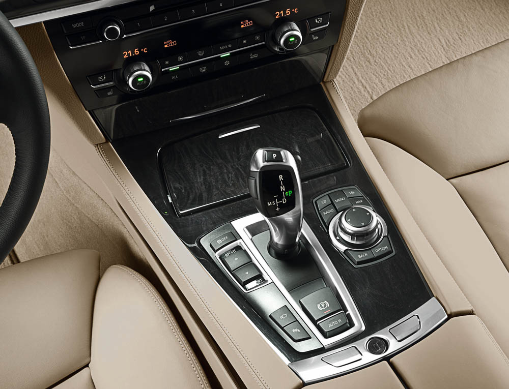Aktivní řidičský styl je zřejmý hned po nastoupení. Na středovém tunelu je elektronický volič samočinné převodovky, umožňující kromě volby základních jízdních režimů také manuální řazení. Vlevo směrem k řidiči je ovládání systému Dynamic Driving Control, vpravo ovladač iDrive.