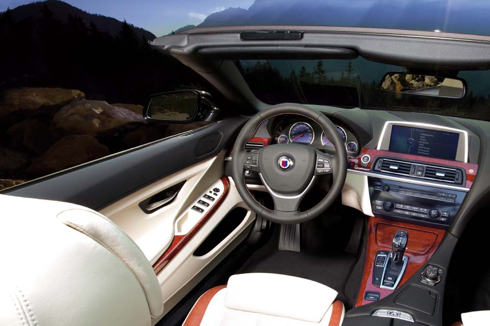Modré přístroje Alpina s informačním displejem s vysokým rozlišením, s černým LCD panelem a sportovním volantem, ručně obšitým kůží Lavalina, modře osvětlené prahy dveří s logem nebo klasické obložení Alpina z mázdřitého myrtového dřeva – nachází se pouze na tichomořském pobřeží USA, kde je kultivováno z vavřínových hájů pěstovaných pouze pro tento účel – to jsou jen některé z elegantních prvků interiéru určených pouze pro znalce, které poukazují na exkluzivní původ BMW Alpina B6 Bi-Turbo. Osobním přáním zákazníků se samozřejmě žádné meze nekladou. Cokoliv, co je součástí rozsáhlé výbavy BMW a Alpina, ať už jde o barvu nebo výbavu interiéru, si můžete zvolit zcela podle vlastního vkusu. Všechny vozy BMW Alpina se mohou pyšnit neomezenými možnostmi výběru nabízenými závodem Alpina Manufaktur.
