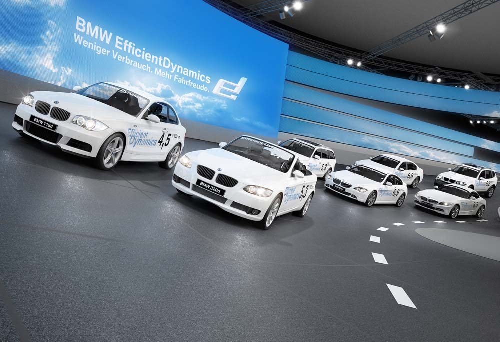 Základní myšlenka prezentace značky BMW se opírá o radost z jízdy – návštěvníci budou moci vidět automobily poprvé v pohybu kolem expozice. Představované automobily budou vyjadřovat přístup BMW EfficientDynamics: spojení radosti z jízdy s nízkou spotřebou paliva. Dvě poslední generace modelů BMW určených pro Evropu se vyznačují snížením spotřeby paliva o více než 25 procent, při současném zvýšení radosti z jízdy. Při otevření autosalonu IAA se BMW pochlubí produkcí již více než 1,4 milionu automobilů vybavených konceptem technologií EfficientDynamics, který získal mnoho ocenění. Ve světové premiéře se představí hybridní modely – BMW ActiveHybrid 7 a BMW ActiveHybrid X6, i nové sériové modely BMW řady 5 Gran Turismo