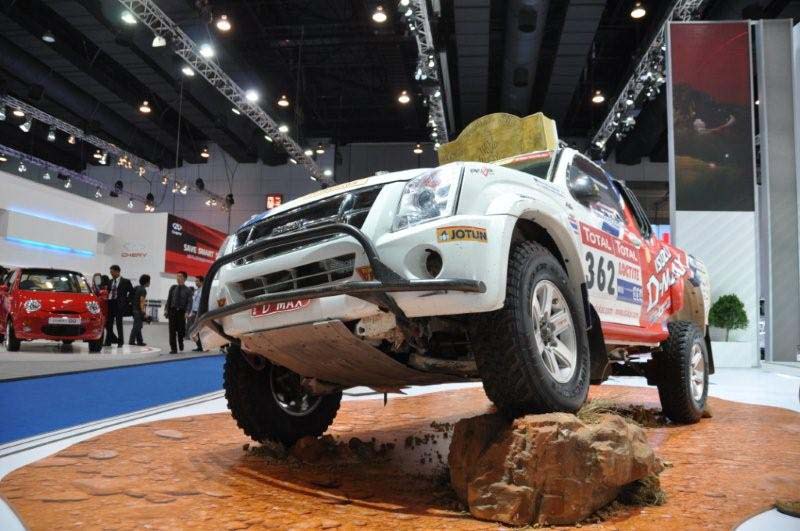 Dobrou prezentací a tahákem pro oko návštěvníka jsou na autosalonech vždy ženy a závodní speciály. Na mnoha stáncích tedy najdeme závodní vozy z Dakaru, okruhové speciály či soutěžní speciály. Nás nejvíce zaujalo nové závodní Mitsubishi Pajero Sport s nímž jel Dakar thajský jezdec P. Mana či dakarský pikap Isuzu D-max australského jezdce Bruce Garlanda. Na každé auto se pak lepí usměvavé hostesky, které jsou pro nás stejně exotické, jako většina vystavených vozů.