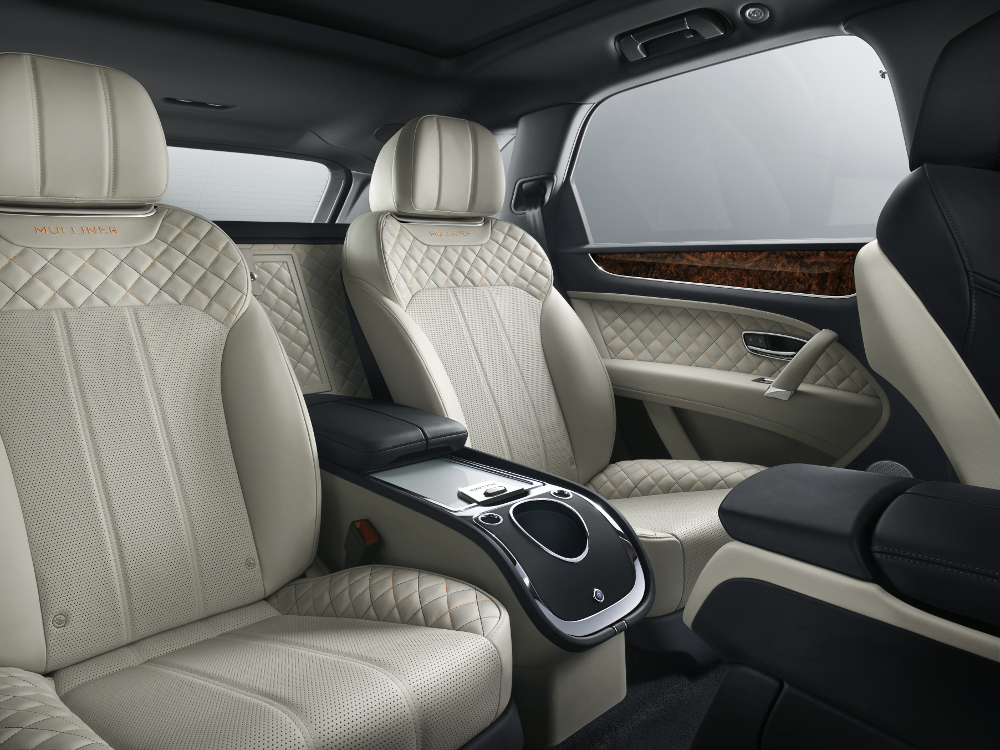 Zakázkové prvky z dílny Mulliner zahrnují nový chladič na šampaňské v zadní části kabiny, jehož součástí je nasvícený chladicí box a zakázkové flétny z broušeného skla značky Cumbria Crystal. Vše je nenápadně integrováno do velkoryse řešené zadní středové konzole.