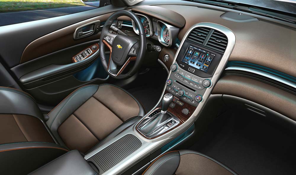 V interiéru najdeme metalické, chromové a dřevěné prvky kolem řadicí páky, středové konzoly, v okolí přístrojů, na dveřích a na volantu. Lehké, ledově modré podsvícení poskytuje rovnoměrnou, příjemnou iluminaci přístrojového panelu a odkládacích prostorů. Ke zjemnění interiéru Malibu přispívá také ledově modré podsvícení ovladačů na středovém panelu.