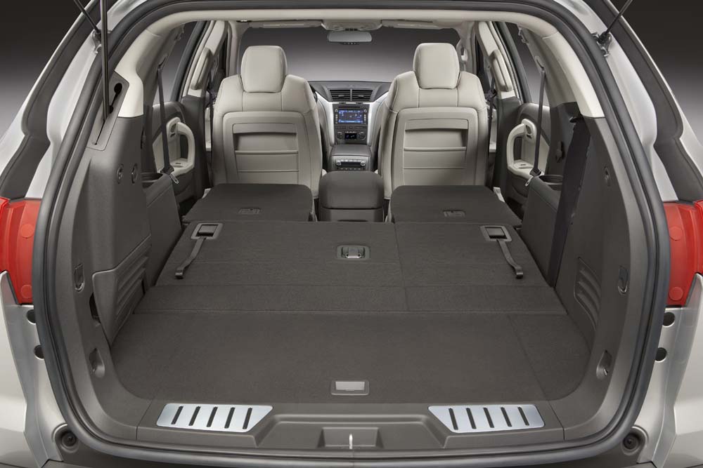 Model Traverse o délce 5,20 metru bude na americký trh dodáván ve třech výbavách – LS, LT a LTZ a buď s pohonem předních nebo všech kol. Jeho rozvor, těsně nad tři metry, přijde velice vhod osmi cestujícím sedících ve třech řadách sedadel. Obě zadní řady, dělené v poměru 60:40, mohou být sklopeny, čímž se zvětší objem zavazadlového prostoru na 3340 litrů. Při obsazení šesti pasažérů je k dispozici 1934 litrů a při plné „sestavě“ zbývá ještě slušných 739 litrů. Kdo potřebuje přepravovat těžší přívěsy, může počítat s jejich hmotností přes dvě tuny.