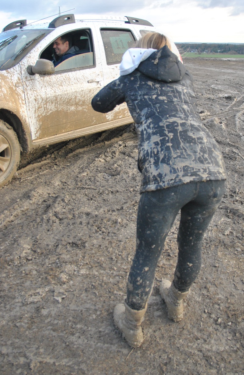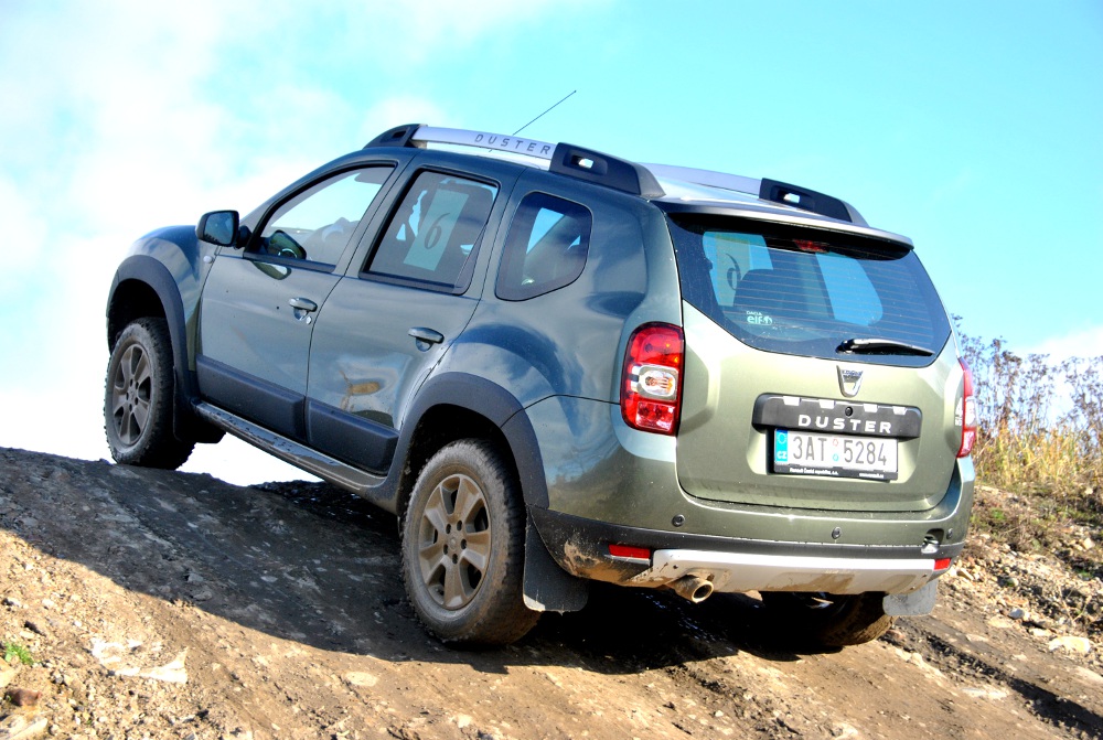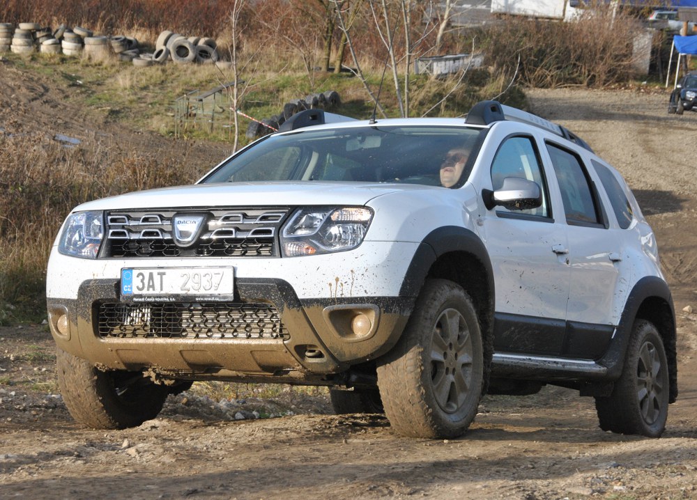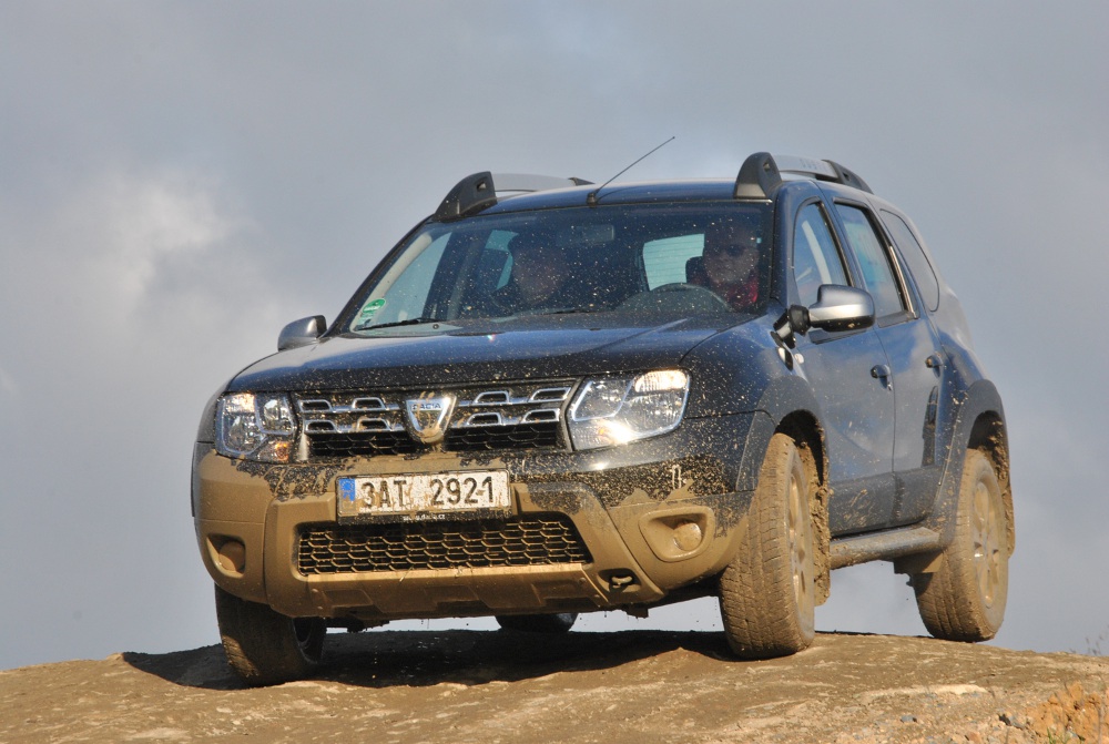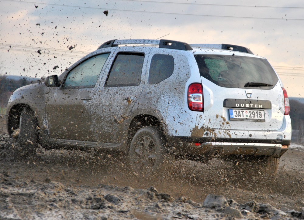 Na terénní dráze, místy hodně rozbahněné, v areálu pražského Hummer Centra jsme si mohli při hodinové jízdě vyzkoušet jeho vlastnosti a musíme uznat, že zvládne hodně. A to nejen díky pohonu všech kol, který se přiřazuje automaticky nebo si jej můžete navolit ručně v poměru 50:50. Ale vliv má i hodnota nájezdových úhlů 29° vpředu, 34,9° vzadu, krátkým převisům 816 mm (vpředu) a 825 mm vzadu a světlostí 210 mm. Dokonce bychom řekli tolik, že je ani běžný řidič nikdy v životě nevyužije. Asi jen těžko s ním bude zvládat takové překážky jako my. Prudké výjezdy a sjezdy, náklon, brodění, jízda v bahně. I šéf Hummer Centra pan Martin Mikulenčák byl překvapen, co všechno Dacia Duster zvládne a pomalu se mu nechtělo z vozu ani vystupovat.