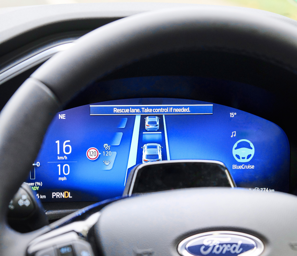 BlueCruise je technologie typu „hands-off, eyes-on“ (ruce z volantu, oči na vozovce), která řidičům umožňuje sundat ruce z volantu při jízdě ve vyznačených úsecích dálnic a hlavních tahů, tzv. Blue Zones. Tyto zóny nyní pokrývají přibližně 95 procent dálnic na 16 trzích v Evropě 5, což zajišťuje plynulý zážitek při cestování na dlouhé vzdálenosti i při mezinárodních cestách.