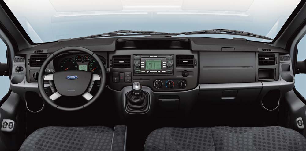 Zpřehlednění doznala rovněž nabídka audiosystémů. Rádio s přehrávačem CD, dálkovým ovládáním na sloupku volantu a vstupem aux-in pro MP3 tvoří základní výbavu každého Transitu, připlatit lze za měnič na šest CD nebo za satelitní navigaci s barevným displejem, přehrávačem CD a slotem pro paměťovou kartu SD.