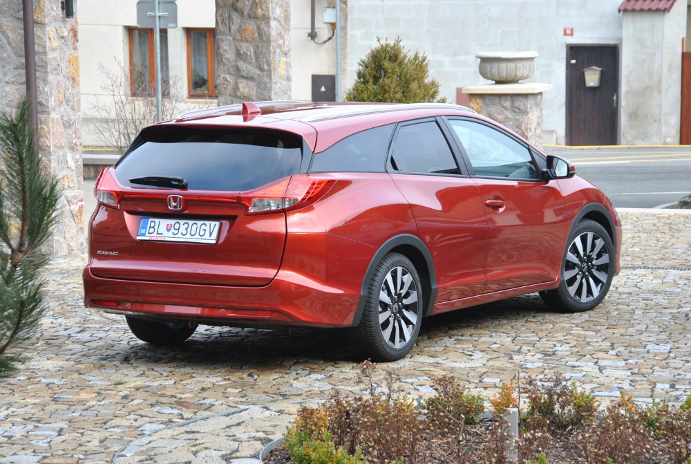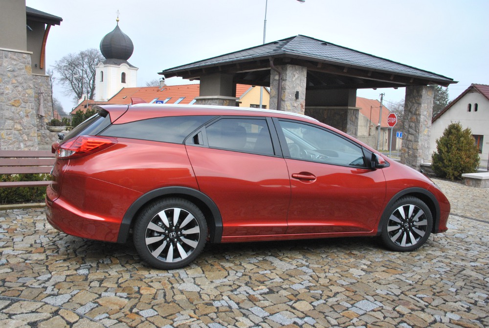 A určitě se bude líbit i sportovně založeným zákazníkům, neboť na pohled díky elegantním tvarům nevypadá ani jako kombi, vyvíjené i vyráběné výhradně v Evropě. Dynamiku zdůrazňuje především design zadní části včetně střešního spoileru i dvou malých bočních spoilerů na sloupku pátých dveří. Aerodynamická karoserie přebírá stejné charakteristické rysy jako inovovaný Civic včetně nové černé lišty na předním nárazníku.