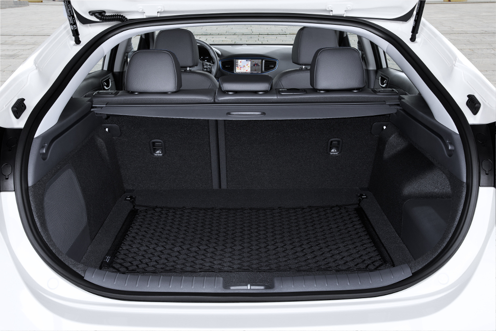 uložených pod zadními sedadly, umožňuje využívat vnitřní prostor pro cestující a zavazadla, bez jakýchkoli kompromisů. IONIQ Hybrid tak nabízí zavazadlový prostor o objemu 443 (VDA 211) až 1505 litrů (VDA 214) při sklopení zadních sedadel. To platí i pro modely IONIQ Plug-in a IONIQ Electric, které nabízejí navzdory větší sadě akumulátorů, rovněž velkorysý zavazadlový prostor.
