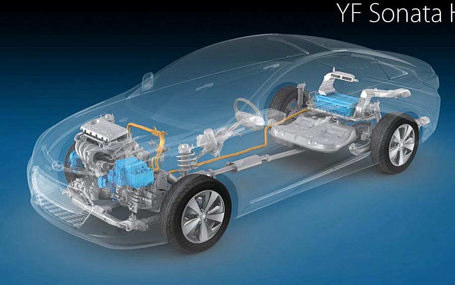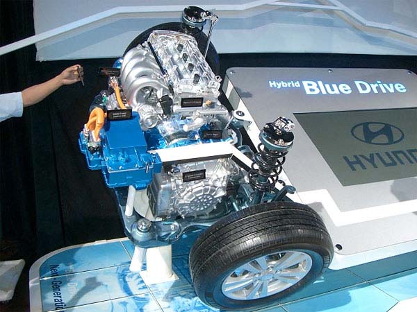 Hybridní systém s paralelním uspořádáním dokáže vůz pohánět elektromotorem, zážehovým motorem nebo kombinací obou zdrojů v závislosti na jízdních podmínkách a požadavcích řidiče. Paralelní uspořádání hybridního pohonu se liší od technologie používané konkurenty. Hyundai Hybrid Blue Drive je prvním systémem s technologií lithium-polymerových akumulátorů, jejichž vlastnosti předčí stávající typy akumulátorů Ni-MH a Li-Ion.