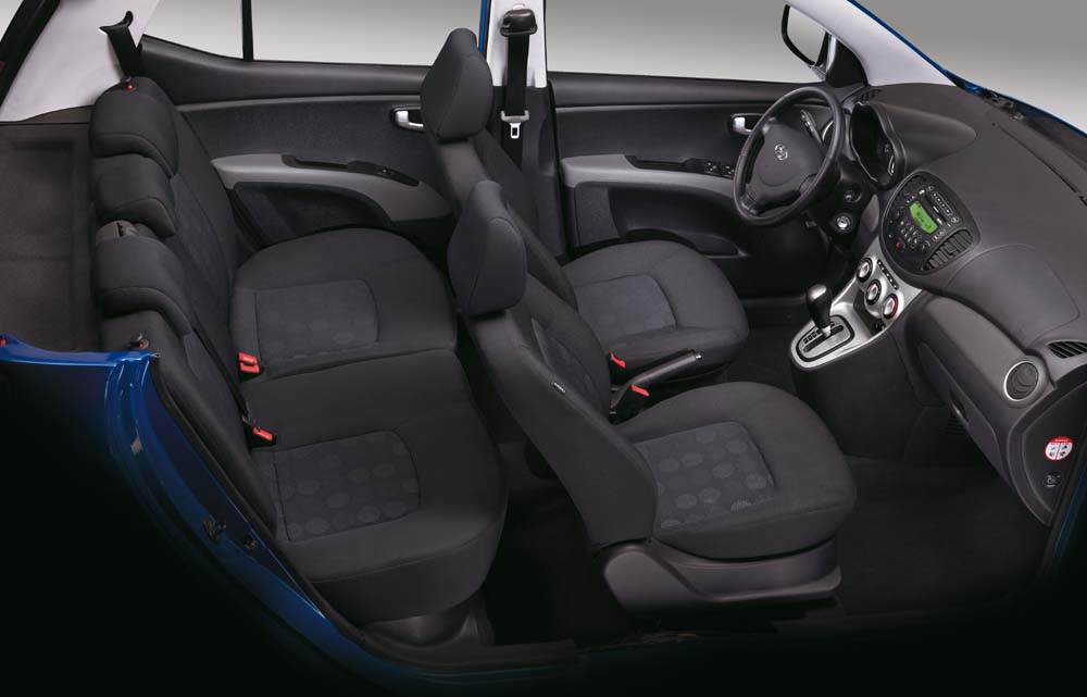 Doslova revoluce se odehrála uvnitř vozu, neboť i10 je určen pěti cestujícím na rozdíl od čtyřmístného Atosu. Díky velkému rozvoru 2,3 m poskytuje dostatek místa. Variabilitu interiéru zvyšují zadní dělená sedadla v poměru 40:60, díky nimž lze zvětšit objem zavazadlového prostoru ze 225 l (Atos měl o 38 l více) na 910 litrů, přičemž v zadní části vznikne rovná plocha.