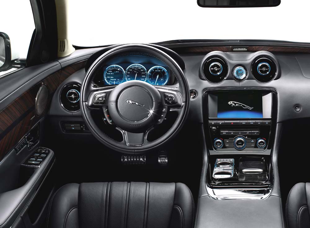 Jaguar XJ Ultimate bude nabízen ve třech barvách interiéru s luxusní kůží, jež pokrývá téměř každou jeho část včetně stropu. Zadní sedadla jsou navržena individuálně na míru a lze je vertikálně polohovat, mají masážní funkci, ventilaci a bederní opěrku. Sedadla odděluje středový panel s koženým lemováním. Stisknutím tlačítka se z panelu vysune pracovní stolek z broušeného hliníku a chromu. Na zadní straně předních sedadel nalezne pasažér i dva iPady třetí generace s bezdrátovými klávesnicemi.