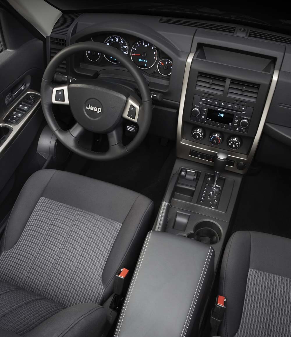 Uvnitř patří mezi standardní prvky nové prvotřídní textilní čalounění; kůží potažený volant, řadicí páka, klika odkládací schránky a páka ruční brzdy; nové lemy v odstínu světlého dřeva; kůží potažená střední konzola a měkké opěrky; špičkový informační panel Electronic Vehicle Information Center (EVIC); tempomat atd.