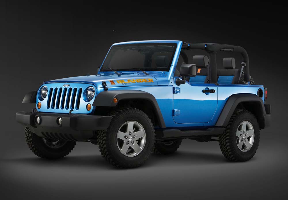 Po více než 20 letech se vrací limitovaná edice Wrangler Islander, postavená na modelu Wrangler Sport. Jeho plážové zpracování nabízí požitek z jízdy na čerstvém vzduchu. Je nabízen v odstínu Surf Blue Pearl Coat, dále v Stone White Clear Coat, Bright Sliver Metallic Clear Coat a Brilliant Black Crystal Clear Coat.