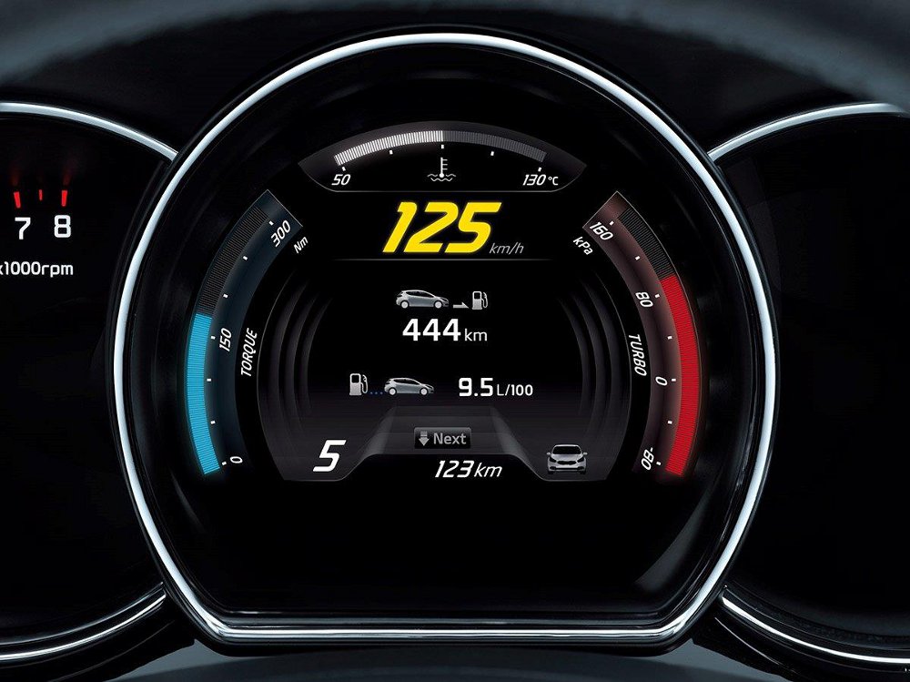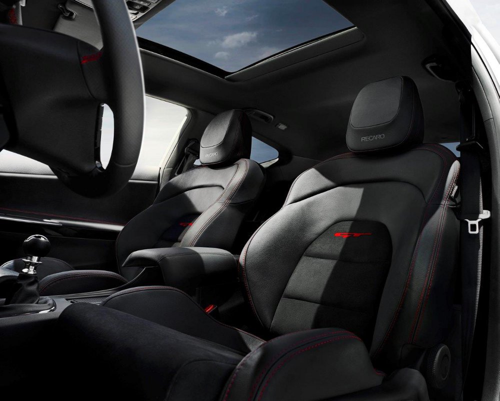 V interiéru jsou použity vysoce kvalitní materiály, oba modely GT jsou vybaveny sportovními sedadly Recaro, hliníkovými pedály a přístrojovým štítem se 7“ TFT displejem. Výsledkem je komfortní interiér se sportovní atmosférou. Poprvé si může řidič ve voze značky Kia upravit vzhled přístrojů výběrem ze dvou uspořádání – „analogový“ režim ukazuje tradiční rychloměr a provozní informace, zatímco režim „GT“ informuje o rychlosti jízdy velkými žlutými číslicemi a tento údaj doplňují ukazatele točivého momentu motoru a plnicího tlaku turbodmychadla.