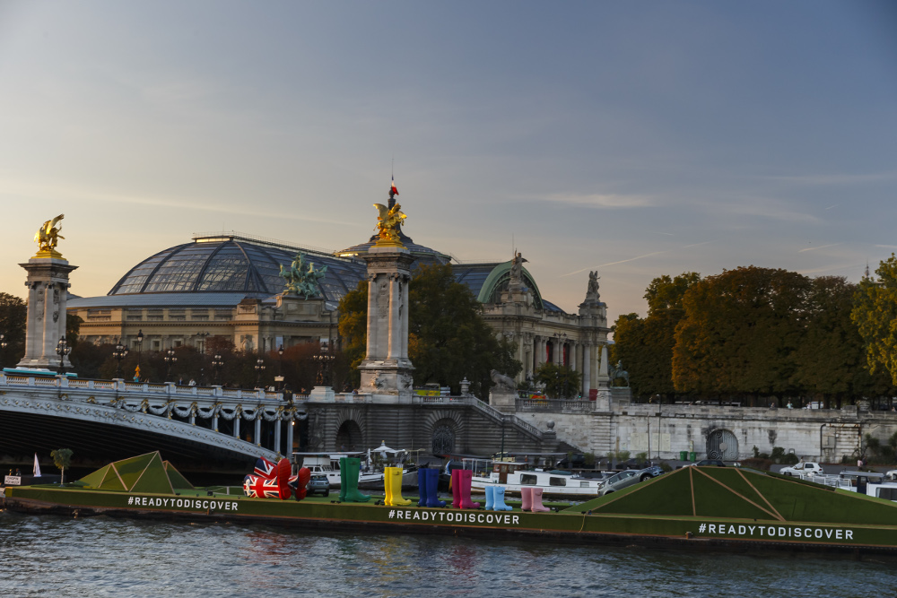 Land Rover představil den před začátkem pařížského autosalonu nový model Discovery Sport uprostřed města na řece Seině na 80 metrů dlouhém člunu. Dva vozy předvedly skvělou show a jejich cesta byla lemována sedmi páry holínek, které symbolizovaly univerzální uspořádání sedadel 5+2.