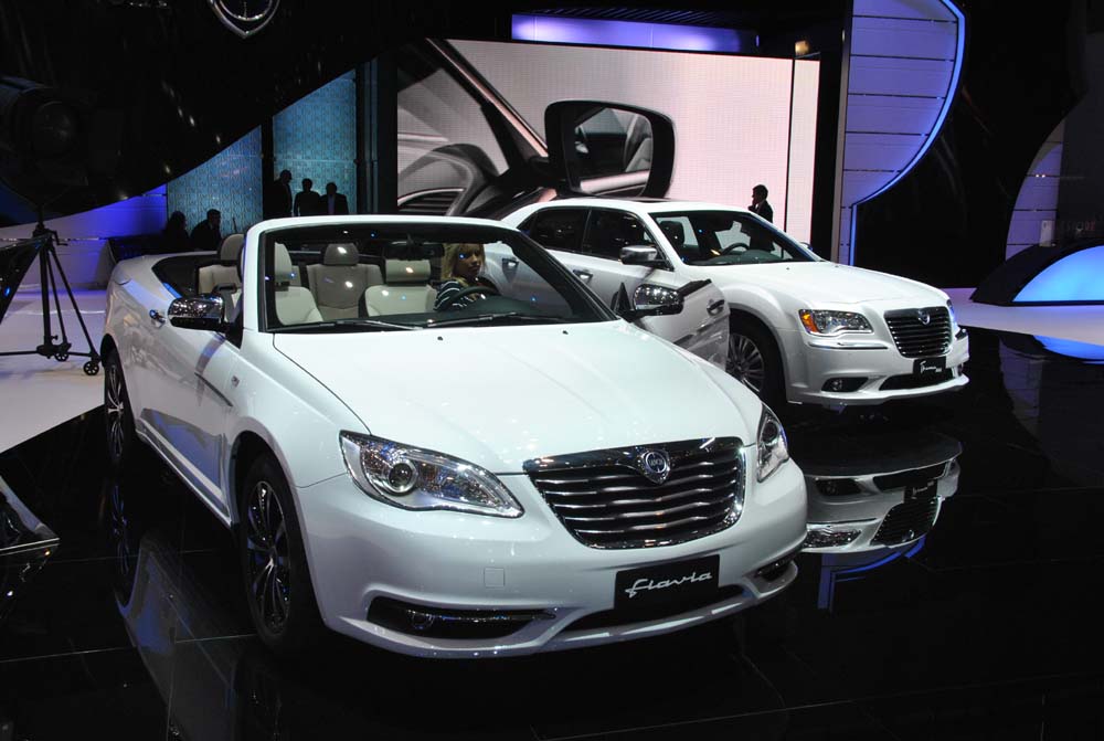 Hvězdou expozice je finální verze modelu Flavia Cabrio, který se na hlavních evropských trzích objeví už tento měsíc. Okouzlující model navržený v souladu se stylem značky Lancia vychází z Chrysleru 200. je vybaven zážehovým motorem 2.4 o výkonu 175 k a pracuje ve spojení s šestistupňovou automatickou převodovkou. Veřejnost může obdivovat hned dva modely – jeden v jasně bílé barvě a s interiérem v dvoubarevném černobílém koženém čalounění, druhý v šedém odstínu Mineral s černým koženým čalouněním. Obě vozidla jsou charakteristická bohatou standardní výbavou all-inclusive.