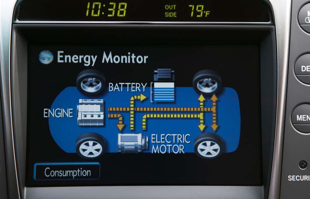 Otáčkoměr nahradil ukazatel měřidla výkonu, který informuje o výkonu hybridní jednotky a jaké množství energie bylo generováno při brzdění nebo zpomalení. Začlenění motoru do systému Lexus Hybrid Drive odstranilo použití spouštěče, alternátoru i hnacího řemenu, protože vidlicový šestiválec je spouštěn elektrickým generátorem. Kvůli co největší výkonnosti pracuje výkonný elektromotor jako elektrické dmychadlo, které spalovacímu motoru pomáhá dosáhnout proměnlivého výkonu. Systém hybridního pohonu využívá třífázový elektromotor synchronního typu na střídavý proud s permanentními magnety. Jedná se o nejvýkonnější elektromotor, instalovaný v sériovém osobním automobilu. Dobíjí se činností hybridního systému pohonu, takže nevyžaduje žádné externí dobíjení, a jeho životnost odpovídá životnosti ostatních hlavních částí pohonné jednotky. Při rozjezdu a v malých rychlostech je spalovací motor vypnutý a pohon obstarává elektromotor. Nový hybridní systém nabízí volbu ze tří nastavení výkonu: „Normal" pro optimální vyváženost výkonu a trakce, „Power" (výkon) s aktivnější odezvou škrticí klapky a „Snow" (sníh) pro omezení prokluzu na maximálně kluzké vozovce. Tyto tři režimy je možné zvolit pomocí přepínače umístěného na středové konzoli.