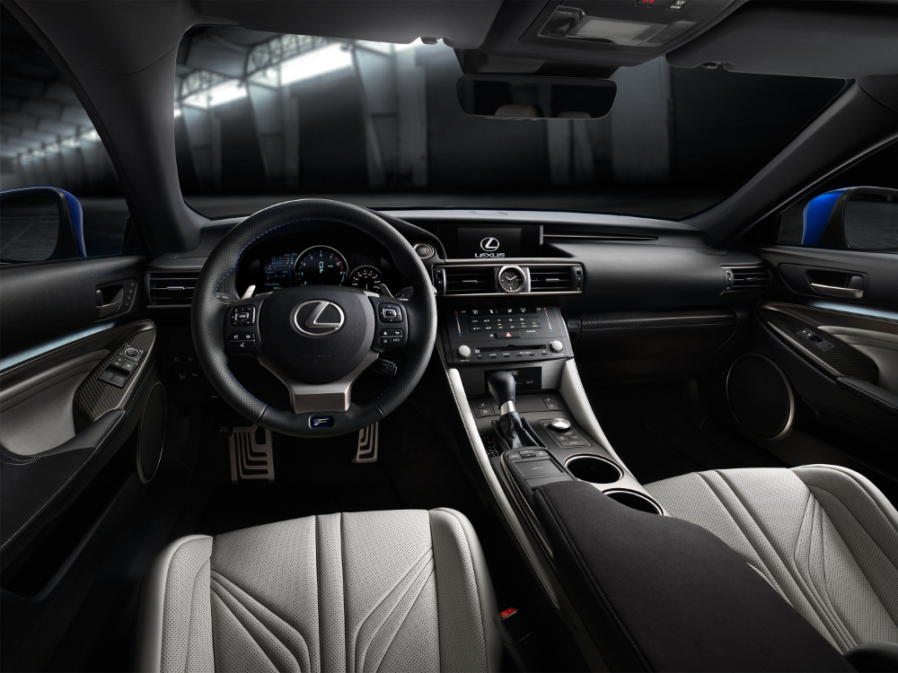 Interiér zahrnuje řadu speciálně navržených komponent, jako jsou např. ukazatele před řidičem, volant, sedadla, pedály a obkladové prvky. Zcela nový panel přístrojů RC F je výsledkem dalšího vývoje centrálního ukazatele z modelu LFA, jenž se přepíná v závislosti na jízdním režimu. Design inspirovaný přístroji v kokpitech letadel umožňuje poskytovat široké spektrum informací v jasné a stručné podobě, kdy řidič požadovaný údaj zjistí pouhým mrknutím oka.
