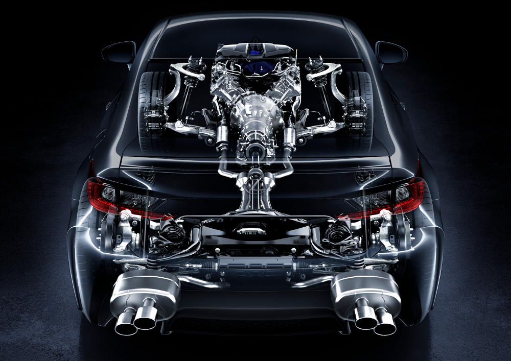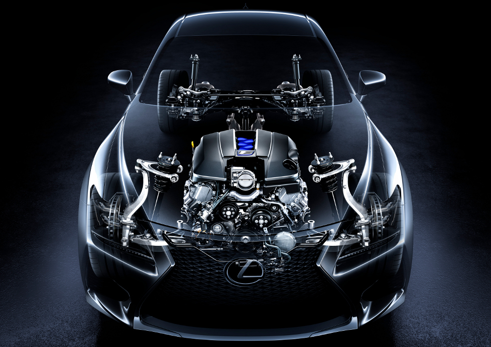 Prozatím doposud nejvýkonnější model Lexus F pohání zážehový pětilitrový vidlicový osmiválec 5,0 l s 32 ventily, schopný vyvinout přes 450 k a točivý moment 520 Nm. Hlavy válců a všechny pohyblivé komponenty byly navrženy zcela nově tak, aby poskytly vyšší maximální výkon ve vyšších otáčkách než dříve. Výkonný motor Lexus při jízdě ustálenou rychlostí využívá Atkinsonův cyklus v zájmu nižší spotřeby paliva a následně se ve vyšších otáčkách přepíná na Ottův cyklus, kdy dosahuje působivých úrovní výkonu.