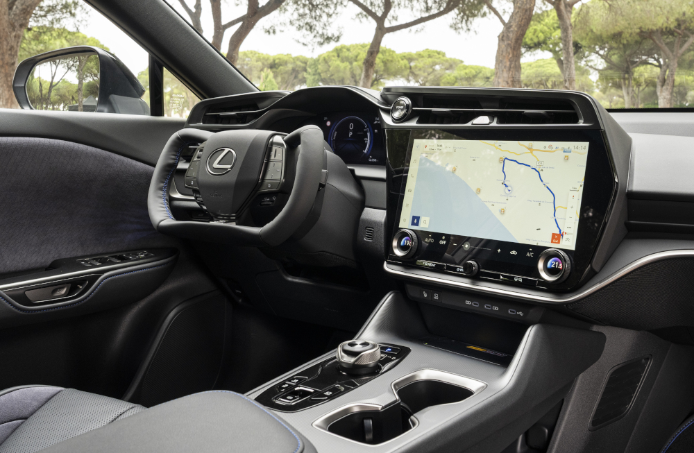 V novém voze značka Lexus přichází s novinkou elektronického řízení steer-by-wire, radikální technologií, která mění styl práce s volantem. Chybí horní i spodní zaoblená část volantu, takže připomíná spíše joystick v pilotní kabině. Filtruje nežádoucí vibrace a umožňuje lepší výhled z předního okna.