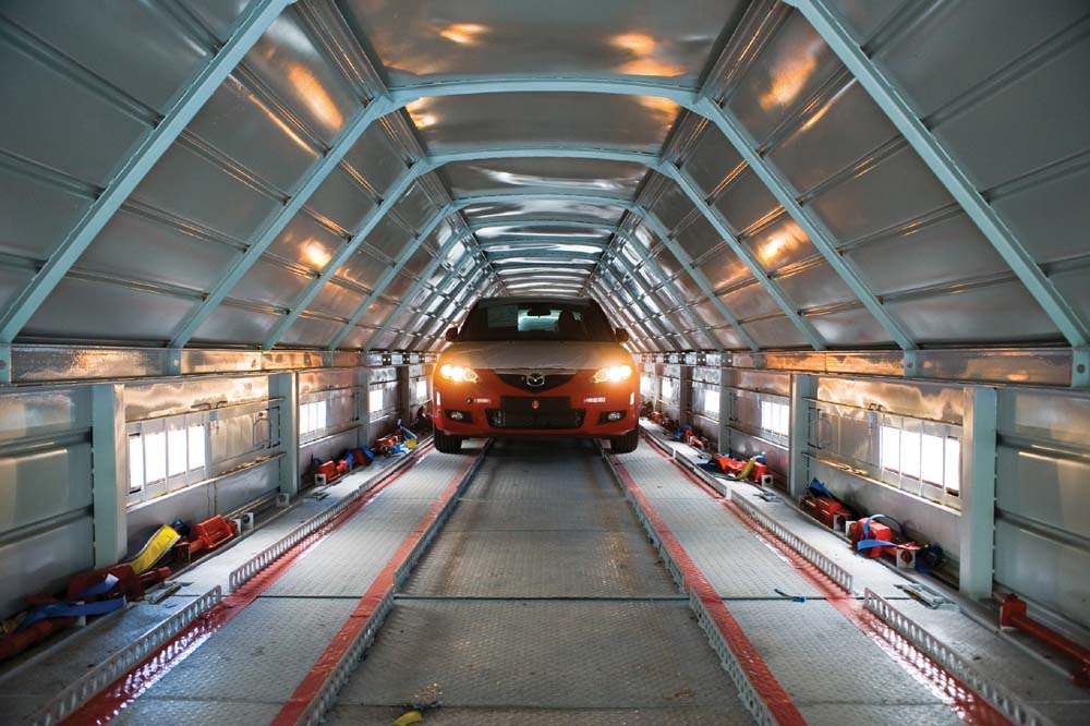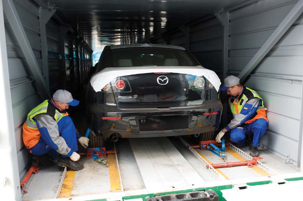 Vozy budou převáženy na po cestě dlouhé zhruba 9300 kilometrů z města Zarubino (blízko Vladivostoku) – kam jsou dováženy z Hirošimy – do Moskvy speciálními vlaky se třiceti vagony. Čas přepravy do Moskvy je pouze 10 dní – stejně jako osobní vlak. Všechny vlaky Mazda používají pouze uzavřené vagony a povrch vozů je bezpečně chráněn stahovací fólií. Jakmile vozy dorazí do Moskvy, projdou přísnou kontrolou tak, aby byly dodrženy všechny kvalitativní standardy společnosti Mazda.