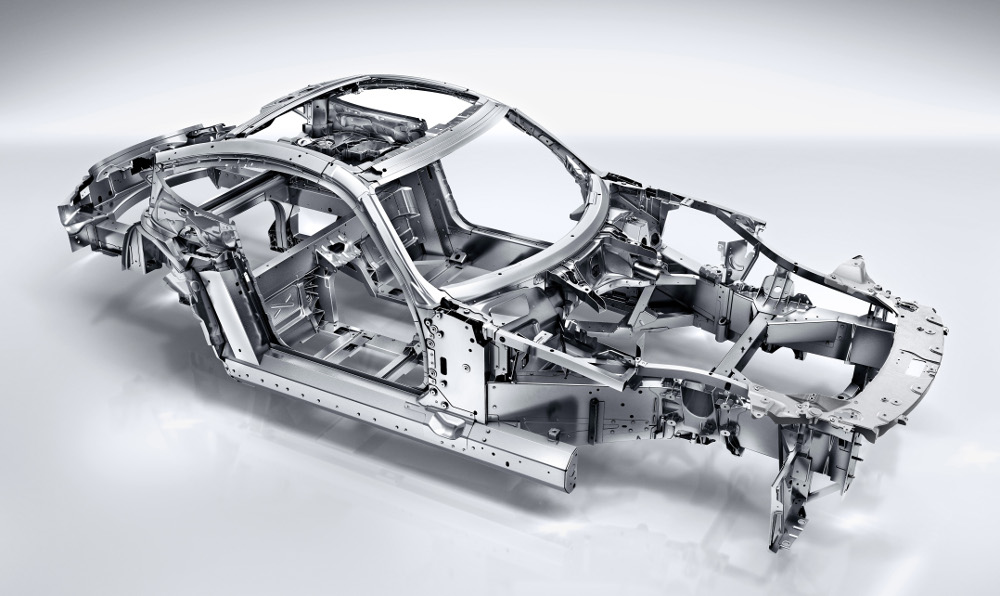 U konstrukce karoserie spoléhá MB-AMG na inteligentní kombinaci materiálů. Skelet a vnější panely jsou z hliníku, zadní víko z oceli a vybrané přední části z hořčíku. Extrémně lehká hořčíková slitina na přídi snižuje moment setrvačnosti před přední nápravou, a vylepšuje agilitu vozidla. Prostorový rám s optimalizovanou hmotností je z více než 90 procent tvořen hliníkovými komponenty. Hmotnost celého skeletu činí 231 kg, což je špičková hodnota v segmentu sportovních vozů.