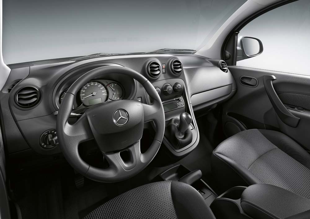 Řidič a spolujezdec sedí na pevně a pohodlně čalouněných sedadlech. Ergonomické tvarování opěradla poskytuje boční vedení, a tím i komfort a bezpečnost.