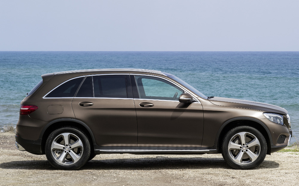 Při pohledu z profilu jsou nápadné linie bočních oken, téměř ve stylu kupé, které ve spojení s rozvorem modelu GLC, jenž byl prodloužen o 118 mm, propůjčují vozu elegantní protaženou siluetu. Markantní matně černé ochranné panely na blatnících, kola s průměrem ráfku až 20“ a na přání dodávané boční prahy se stupačkou jsou jasnými poukazy na terénní vlastnosti modelu GLC.