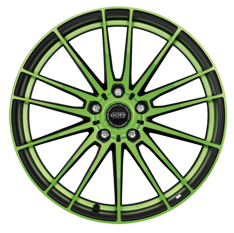 Se svými 15 ostře řezanými paprsky je Dotz Fast Fifteen neúprosné, ale také plné barev. Nekompromisní tvar kola je k dispozici v různých barevných edicích, které si hrají s kontrastem. Barevný krycí lak na leštěné čelní ploše paprsků s černě lakovaným pozadím dodá vozu správnou barvu. Konkávní tvar paprsků a jejich asymetričnost vytvoří působivý prostorový efekt. Leštěné hrana za paprsky společně s logem na lemu ráfku vyjadřují originální rukopis.