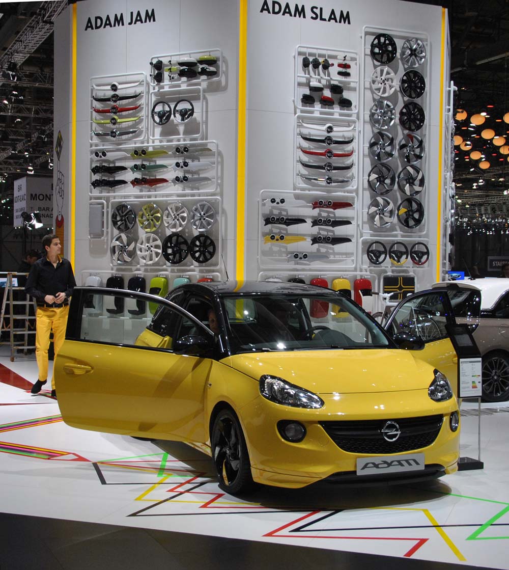 ADAM např. jako první přináší do automobilového průmyslu tři designové prvky, umocňující jeho mimořádný potenciál pro individualizaci: Vyměnitelné barevné segmenty na disky kol, strop kabiny s potiskem a zezadu prosvětlené dekorační obklady přístrojové desky.
