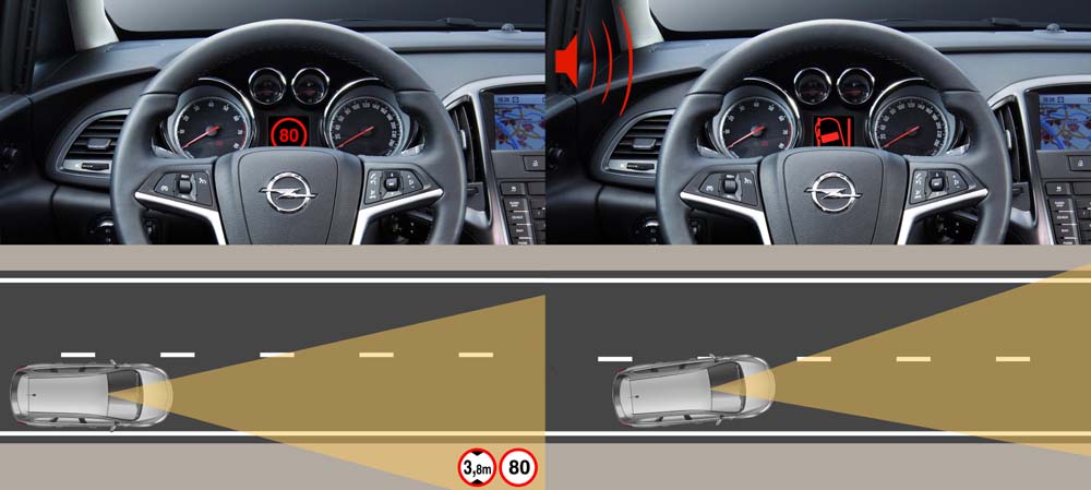 Bezpečnost a komfort zvyšuje třetí generace adaptivních světlometů AFL+, které pracují v devíti různých režimech osvětlení a samočinně se přepínají podle profilu cesty a jízdních podmínek. Kamerový systém Opel Eye upozorňuje řidiče na zákazové značky a omezující rychlost a varuje řidiče i před mimoděčným opuštěním jízdního pruhu.