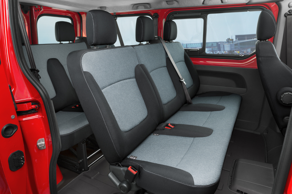 Vivaro Combi má standardně vyjímatelnou třímístnou lavici ve druhé a třetí řadě. Navíc sklon opěradla lavice ve třetí řadě je možné nastavovat. Nákladový prostor je kompletně chráněný vnitřním obložením.