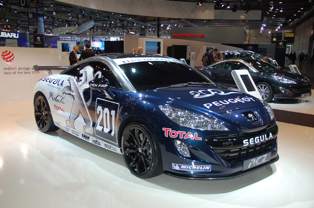 Zajímavý automobil byl k vidění také u Peugeotu – okruhová verze nového modelu RCZ připravená pro závod 24 hodin cestovních automobilů na Nürburgringu. V roce 200. výročí založení pojedou dva tyto vozy s čísly 200 a 201. Jsou připraveny podle předpisů skupiny D1T, tedy s přeplňovanými motory do dvou litrů. Stejně jako v úspěšném prototypu pro Le Mans se pod kapotou objeví dieselová technologie, tedy vznětový čtyřválec 2.0 o výkonu 200 k a s točivým momentem 400 Nm.