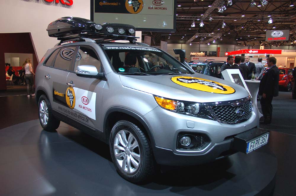 Zatímco u Hyundaie se vše točí kolem světového šampionátu ve fotbale, tak Kia ukázala mj. novou Sportage a upravené Sorento pro projekt Road to South Africa, který rovněž souvisí s MS ve fotbale. V rámci humanitární akce vyrazily do Johanesburgu 5. dubna čtyři modely Sorento, které do hlavního města Jihoafrické republiky dorazí 11. června, den před zahájením šampionátu. Na cestě dlouhé 24 tisíc kilometrů projedou 17 africkým zemí, včetně těch, které se kvalifikovaly na šampionát (Pobřeží slonoviny, Ghana, Niger, Kamerun). Účastníci expedice prošli speciálním offroadovým tréninkem, vozy s turbodiesely 2.2 CRDi a šestistupňovým automatem jsou vybaveny mj. šnorchlem, střešním nosičem, navijákem, rezervními kanystry i pneumatikami či zástrčkou na 230 v.