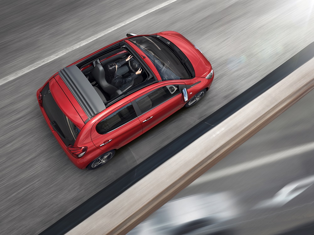 Plátěnou střechu lze otevřít až do šířky 80 cm a délky 76 cm. Kromě toho může nastavit otevření střechy do libovolné polohy: jen nad předními sedadly nebo nad všemi 4 sedadly atd. Po otevření střechy se automaticky vysune aero-akustický spoiler omezující proudění vzduchu v kabině.