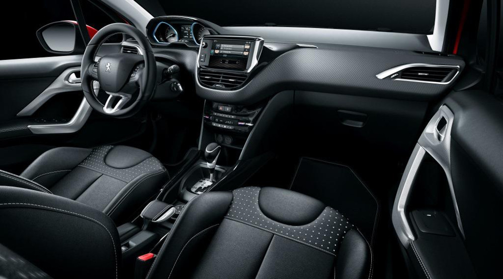 Po otevření dveří se objeví nerezové prahy s nápisem Peugeot, hliníkové pedály a červeně obšité koberečky. Head-up displej je okroužen řadou červených LED diod, připomínajících „RedLine“ vzhled dotykového displeje.
