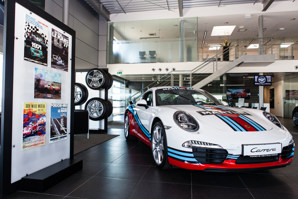 Porsche 911 Carrera v designu MARTINI RACING o výkonu 257 kW, jehož cena je stanovena na 2 450 000 Kč včetně DPH, doplňuje tematická výstava fotografií s motivy závodu 24 hodin Le Mans. Expozice připomíná nejslavnější období automobilky Porsche v tomto světovém závodě, které se datuje až do roku 1970 a rovněž upozorňuje na návrat Porsche v roce 2014.