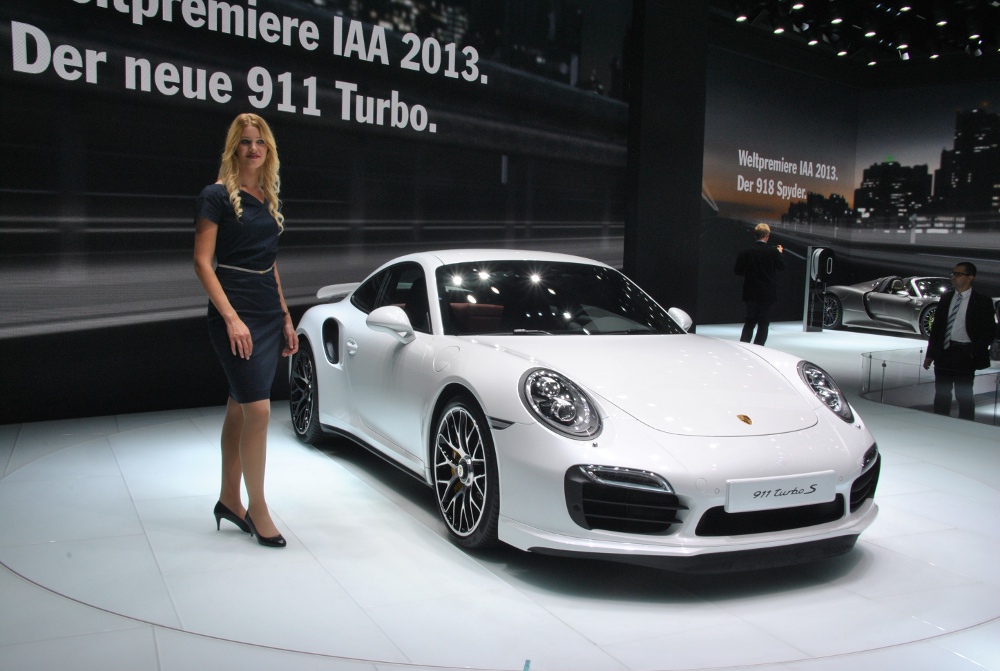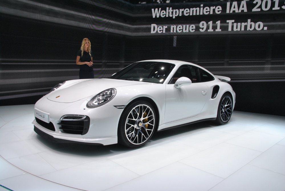 Nová 911 Turbo Prototyp první 911 Turbo se na IAA představil v roce 1973, jen deset let po premiéře původní 911. Na oslavu 40. výročí tohoto modelu Porsche připravilo premiéru nové generace 911 Turbo a Turbo S, která je technologickým a dynamickým vrcholem celé modelové řady 911. Součástí technologického balíčku nových modelů je zcela nový pohon všech kol, aktivní řízení zadních kol, adaptivní aerodynamika, LED světlomety a 560 k plochého šestiválce, přeplňovaného dvojicí turbodmychadel. Tyto prvky stanovují technologický etalon pro závodní a supersportovní automobily určené pro každodenní používání. Jízdní dynamiku posunul na vyšší úroveň také aktivní systém Porsche Dynamic Chassis Control (PDCC), který je určený pro kompenzaci naklánění karoserie a poprvé se představil právě v modelech 911 Turbo. Tento systém je součástí standardní výbavy modelu 911 Turbo S, do níž patří také paket Sport Chrono s dynamickými závěsy motoru a keramické brzdy PCCB. Tyto prvky jsou pro 911 Turbo k dispozici jako součást doplňkové výbavy. Všechny použité systémy umožnily zkrátit čas modelu 911 Turbo S na Severní smyčce okruhu Nürburgring na 7:27 min – samozřejmě na standardních sériových pneumatikách. Oba nové sportovní modely jsou v režimu NEDC současně úspornější. Vykazují kombinovanou spotřebu 9,7 l/100 km, která je o 15 % nižší než u předchozí generace.