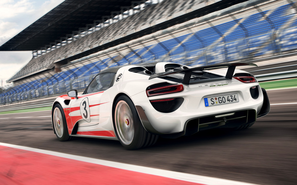 Model 918 Spyder s paketem Weissach2) v současnosti drží s časem 6:57 minuty rekord na jedno kolo na Nordschleife okruhu Nürburgring. Současně vůz vykazuje minimální spotřebu paliva a produkci emisí, které jej zařadily do energetické třídy A+. S paketem Weissach činí normovaná spotřeba v cyklu NEDC 3,0 l/100 km (bez něj 3,1 l/100 km). Úroveň spotřeby paliva v normovaném cyklu měření odpovídá 12,7 kWh/100 km