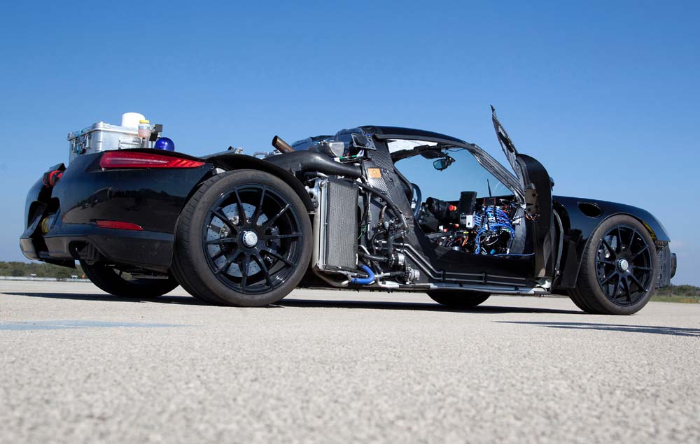 Porsche využívá speciální technická řešení, jako je karoserie z kompozitu vyztuženého uhlíkovými vlákny, plně variabilní aerodynamika, adaptivní řízení zadních kol a výfuková soustava s nahoře vyvedenými koncovkami výfuku.