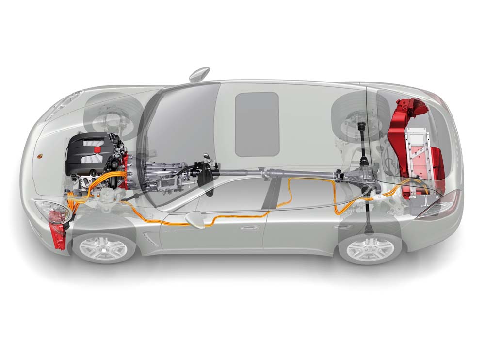 Vůz pohání hybridní systém se stejnou konfigurací, jako Cayenne S Hybrid: hlavním zdrojem síly je kompresorem přeplňovaný zážehový šestiválec s výkonem 333 k (245 kW), spojený s elektromotorem o výkonu 47 k (34 kW). Oba motory pohánějí vůz společně, ale jsou schopné jej uvádět do pohybu také samostatně. Elektromotor se při zpomalování nebo brzdění přepíná do režimu generátoru a plní funkci startéru. Mezi spalovacím motorem a elektromotorem je umístěná elektronicky ovládaná spojka, jež dokáže oba motory od sebe odpojit a spolu s elektromotorem tvoří hlavní hybridní modul hnacího ústrojí. Elektromotor je umístěný mezi zážehový motor a převodovku a spojen s nikl-metal-hydridním (NiMh) akumulátorem, v němž se uchovává elektřina získaná rekuperací kinetické energie při brzdění a jízdě. Vůz je vybaven osmistupňovou samočinnou převodovkou Tiptronic S.