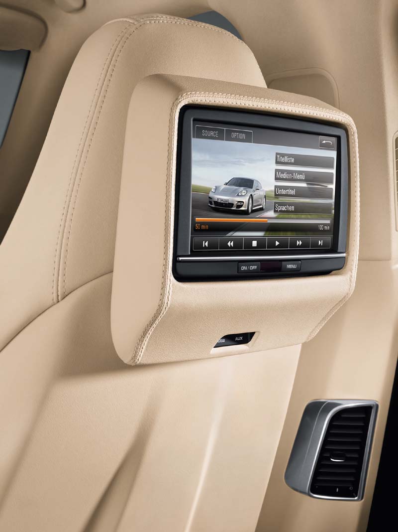 Model Panamera může být přímo z výrobní linky vybaven zábavním videosystémem na zadních sedadlech. Součástí paketu je dvojice nastavitelných barevných displejů s úhlopříčkou 7“ na zadních stranách předních sedadel, stejně jako samotné přehrávače a dvojice bezdrátových sluchátek. Kůží čalouněné držáky displejů jsou připojené pomocí USB konektoru. Systém se ovládá prostřednictvím dotykových displejů a přehrává jak CD, tak i DVD