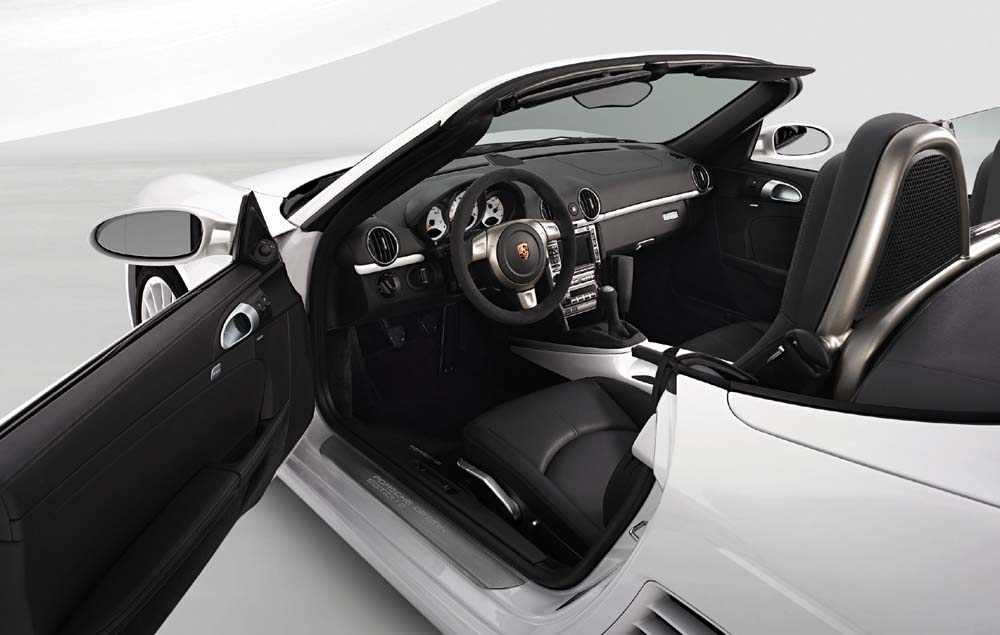 Sériová bílá barva Carrara, která je již dlouho součástí standardní palety barev Porsche, je v novém modelu ještě více zdůrazněna – hvězdice ráfků sériových 19“ kol ve sportovním designu, postranní otvory pro přístup vzduchu, středová konzole a číselníky tří kruhových ukazatelů jsou rovněž nalakovány bíle. Sportovně šedé podélné pruhy na karoserii zdůrazňují zářivou bílou stejně jako noblesní červená koncová světla. Také příslušenství odpovídá bílému podkladu rychloměru a otáčkoměru – Porsche Design pánské náramkové hodinky „Edition 2 Chronograph“ mají bílý ciferník a byly vyvinuty speciálně pro tento Boxster. Naproti tomu jsou barvy střechy a koženého vybavení v klasické šedé a černé barvě.