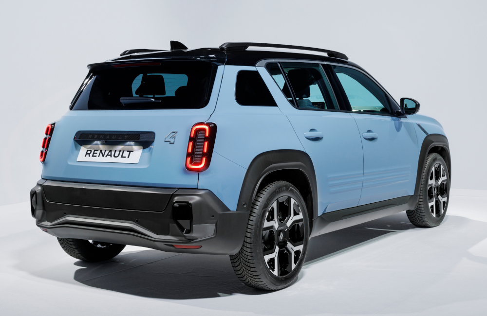 Zatímco proporce vozu umožňovaly snadno zvětšit rozměry, světla musela být umístěna na karoserii tak, aby páté dveře působily rovně, jako u starého Renault 4. A přestože Renault 4 E-Tech 100% elektrický narostl do výšky, zavazadlový prostor musel být také co nejpřístupnější. Proto zadní dveře zasahují až do nárazníku a nabízejí rekordní nákladovou hranu: výška pouhých 61 cm je v průměru o 10 cm nižší než u konkurence!