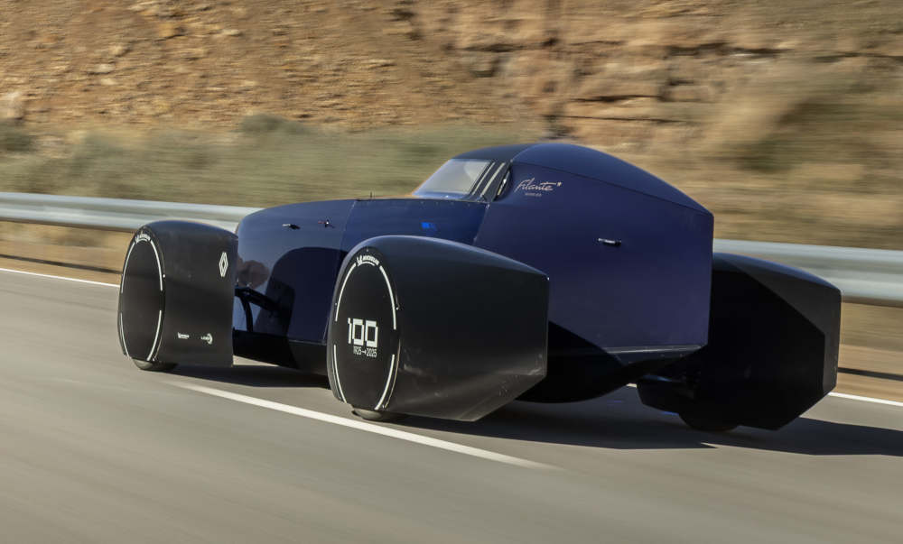 „Hlavním cílem, od prvních náčrtků až po finální testovací jízdu, byla absolutní účinnost. To je charakteristickým rysem rekordního vozu – a odráží průkopnického ducha a tradici Renaultu od jeho založení v roce 1898. Podobně jako modely 40 CV z roku 1925 a Étoile Filante z roku 1956 byl i model Filante Record 2025 navržen tak, aby se stal prvním silničním vozem, který urazí 1 000 km rychlostí přes 100 km/h bez dobíjení, a to s baterií o kapacitě 87 kWh, která je identická s baterií pohánějící elektromobil Scenic E-Tech. Tento úspěch vyžadoval mnoho náročných prací na několika frontách – samozřejmě ultraefektivní aerodynamiku, pneumatiky s nízkým valivým odporem, lehké materiály (včetně uhlíkových vláken a 3D tištěných hliníkových komponentů) a