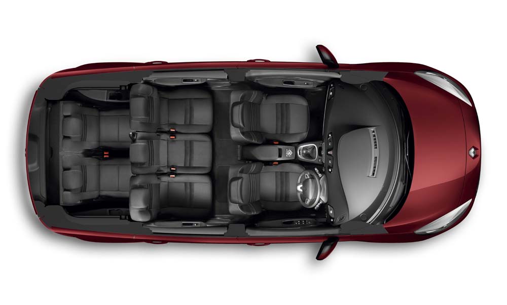 Scénic nabízí modularitu díky sklopení druhé řady sedadel a předního sedadla spolujezdce. Odebráním sedadel druhé řady (Scénic) nebo třetí řady (Grand Scénic) lze získat větší objem nákladového prostoru. Po odebrání sedadel druhé řady přesahuje objem nákladového prostoru 2000 l.