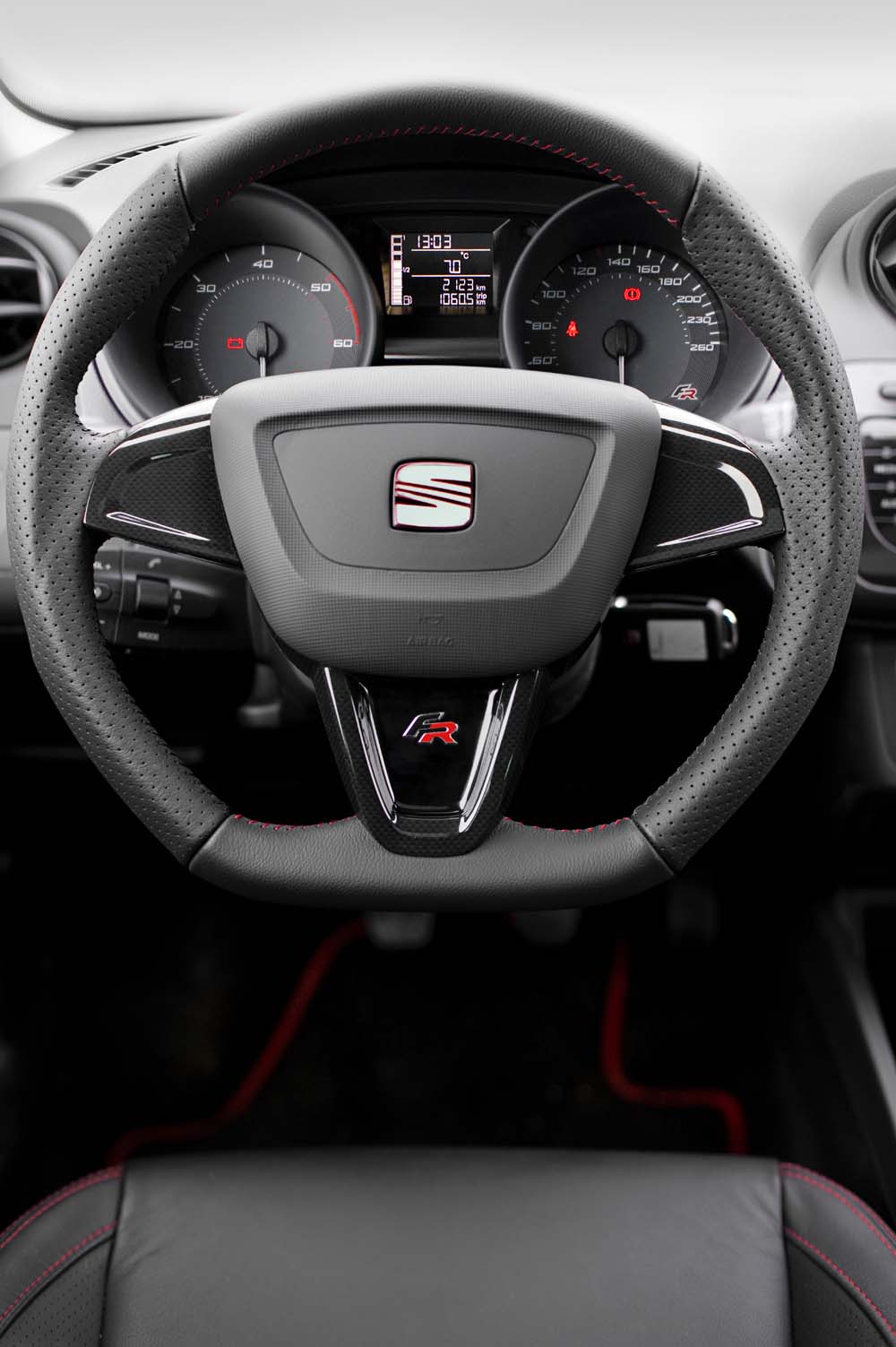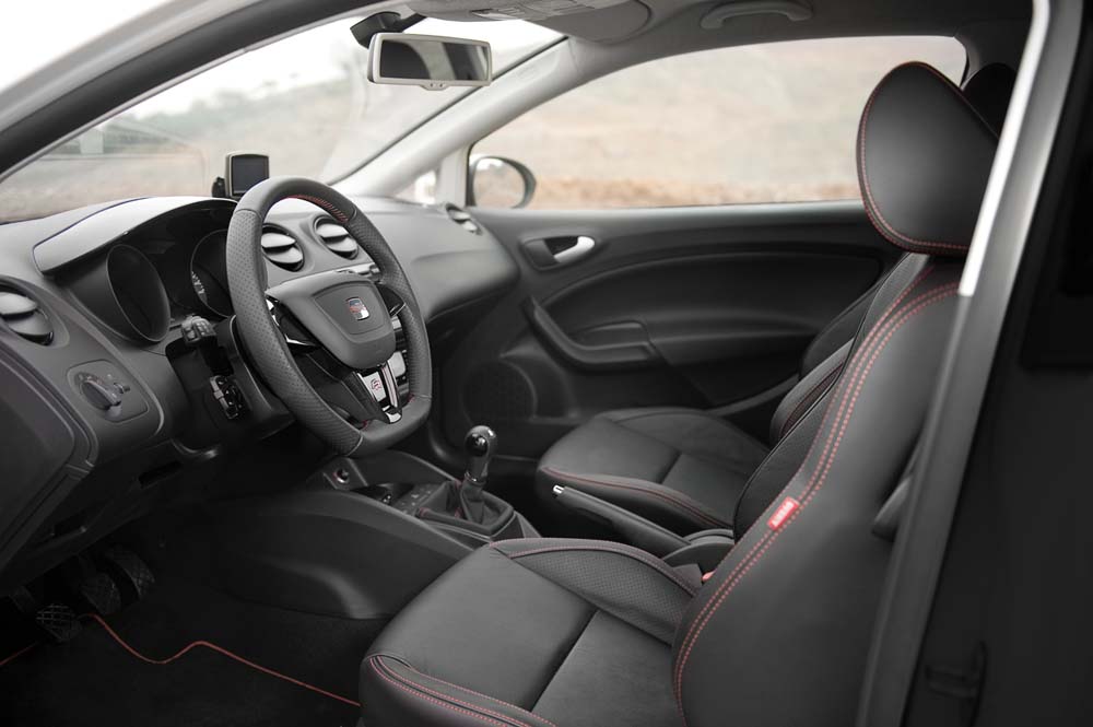 Také interiér dává najevo závodní geny vozu leskle černými ozdobnými prvky na přístrojové desce. Ke sportovnímu vzhledu přispívají speciální přístroje s logem FR, sportovní volant a sedadla, jejichž design i čalounění se liší od ostatních modelů řady Ibiza, a logo FR na opěradlech předních sedadel.
