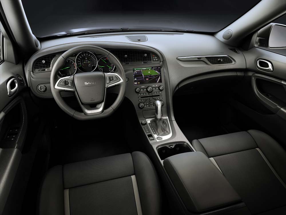 Výrazným rysem je hluboká třídílná přední maska, doplněná efektně tvarovanými ledově modrými světly. Zasklené boční plochy společně s bočními sloupky a předním sklem celý vůz jakoby „obepínají“ a propůjčují unikátní a pro Saab typický vzhled kokpitu. Střecha je opticky snížena a rozšířena zadním spoilerem integrovaným do zadních dveří. Koncová světla s LED lištou vytvářejí opět dojem „ledového bloku“. Dvě koncovky výfuku ve tvaru kosodélníku jsou elegantně integrovány do spodní části zadního nárazníku.