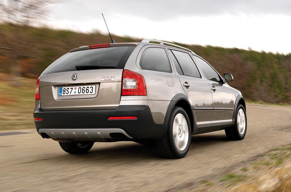 Designová linie Scout si v nabídce modelů Škoda vybudovala pevné místo a model Octavia Scout je vrcholem nabídky. Přepracované masku chladiče lemují výrazné světlomety. Masivní přední nárazník s mlhovkami s Corner funkcí podtrhuje terénní vzhled vozu. Dobrá prostupnost terénem – 179 mm světlé výšky a ochrana podvozku jsou dostačující pro cesty mimo zpevněnou silnici. Pohon všech kol je řešen čtvrtou generací spojky Haldex, která dokáže přenést až 85 % točivého momentu na jedno kolo.